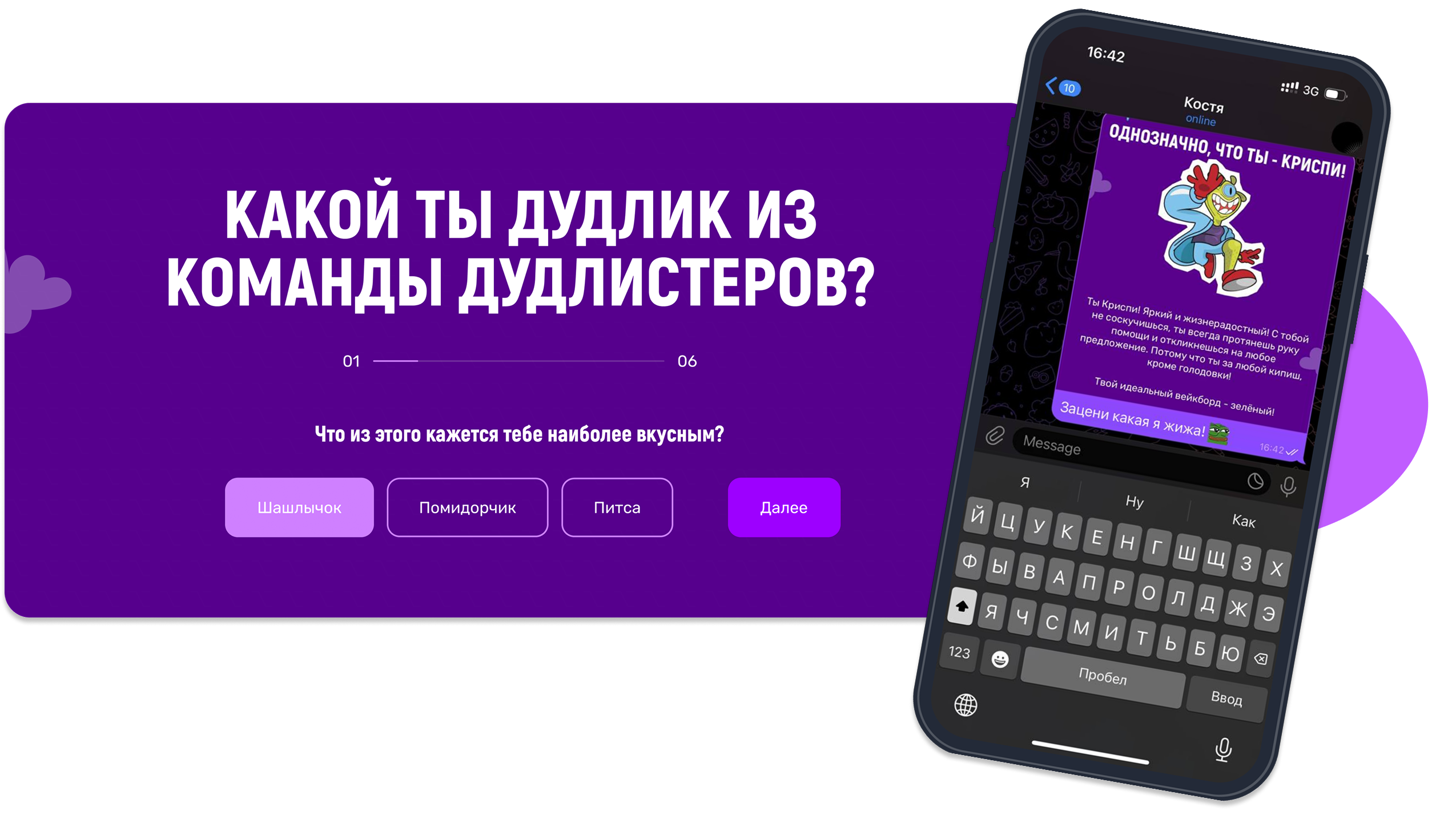 Для удержания аудитории и вирусного маркетинга придумали шуточный тест в стиле “Какая ты пицца?”