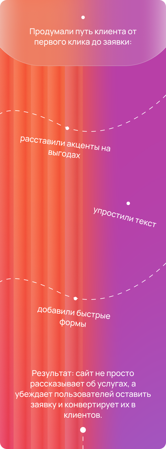 Задача: разработать удобный и современный веб-интерфейс, который улучшит пользовательский опыт, упростит процесс отправки заявок, а также повысит конверсию и привлечёт новых клиентов.