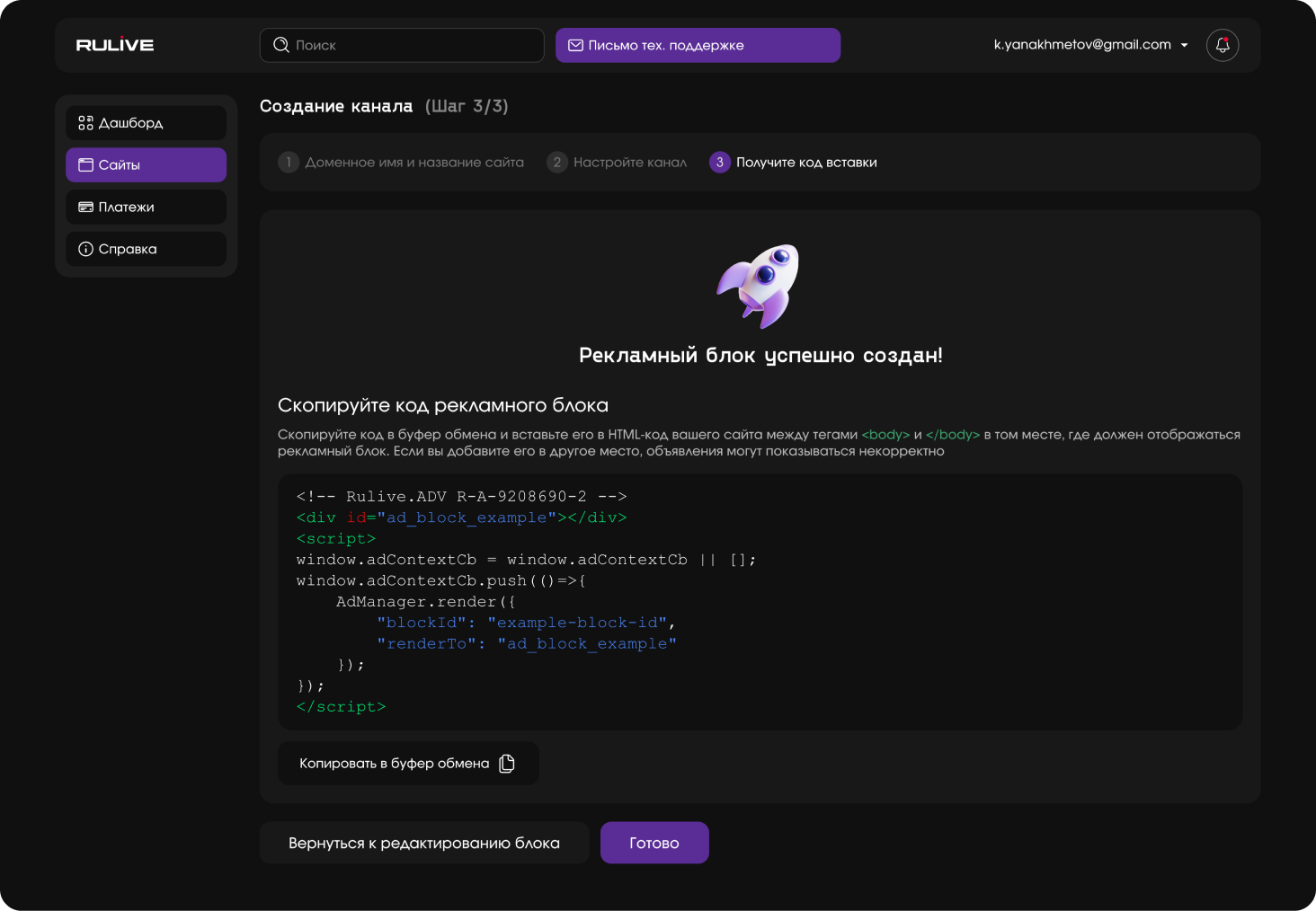 Получение кода вставки